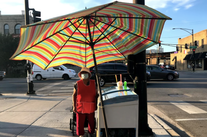 “It is hard for rent, for food, for everything,” Cartina said in Spanish. Originally from Oaxaca, Mexico, she has been selling cold desserts as her only job since she moved to Chicago over 15 years ago.