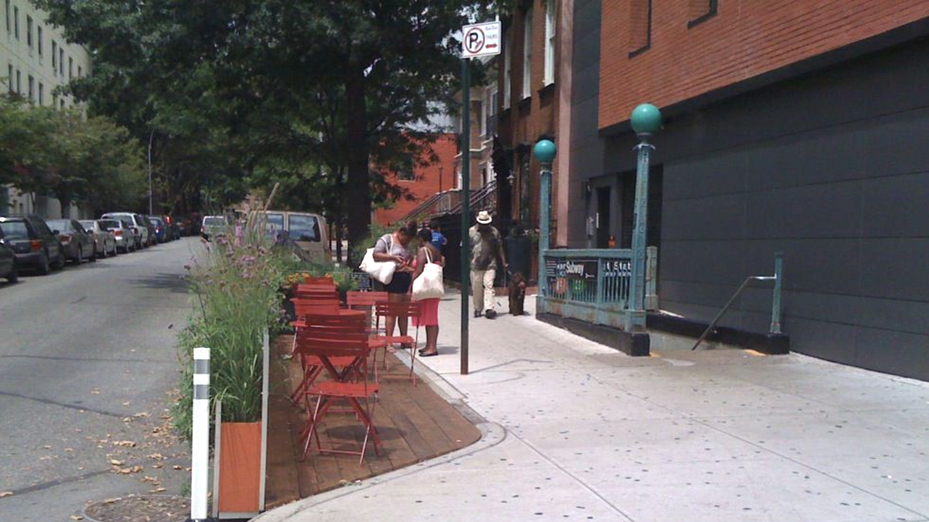 A curb extension with street furniture in New York City. Photo: NACTO