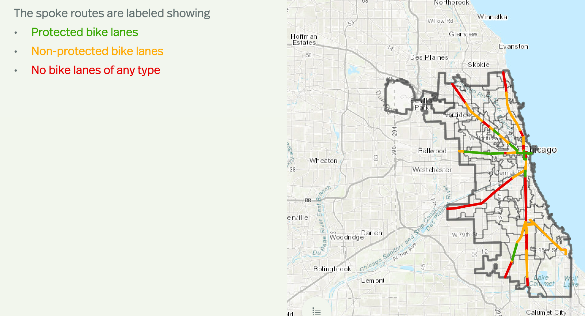 The second big ding in Chicago’s network score is lack of connectivity between a patchwork of protected bike lanes. ATA has been pushing for the Chicago Department of Transportation to make progress on the CDOT’s now decade-old plan to build a cohesive network of bikeways, preferably protected ones, across the city, and currently has a petition urging the city to build 10 more miles of protected bike routes by 2023 and 30 more miles by 2026. These are modest goals, especially when compared to unfulfilled promises made by both the Rahm Emanuel (build 100 miles of protected lanes built in his first term) and Lori Lightfoot administrations (build 50 miles of protected lanes.) And that’s not to mention progress made by peer cities like New York, which constructed almost 30 miles of protected bike lanes last year alone.