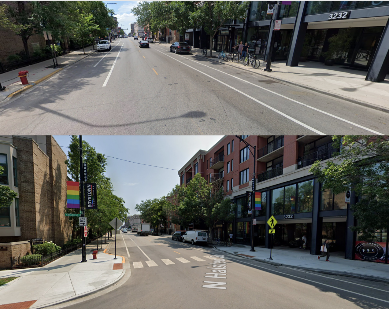 Google Street View images show that, as late as July 2018, the bump-outs hadn’t been installed at Melrose/Halsted. (They were in by July 2019.) So, again, it took years after Lee’s death to make the improvement.