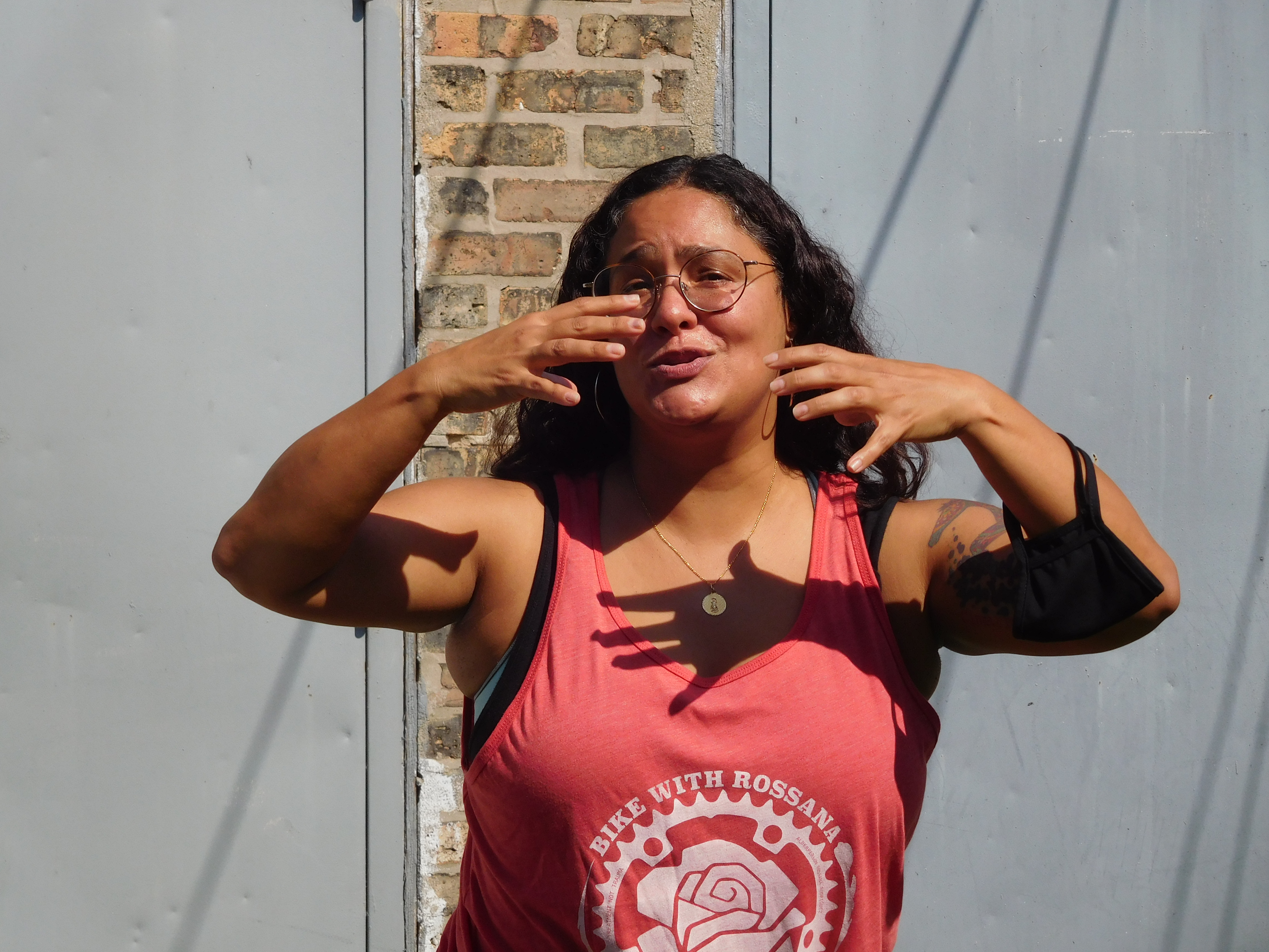 Rodriguez-Sanchez took some time to welcome everyone and provide a pep talk. The alderwoman later told me that, in addition to raising funds, the purpose of the ride was to help community members get to know each other, and to showcase new bike facilities in the area, including the recently completed 312 RiverRun trail system and dashed bike lanes on Montrose Avenue.