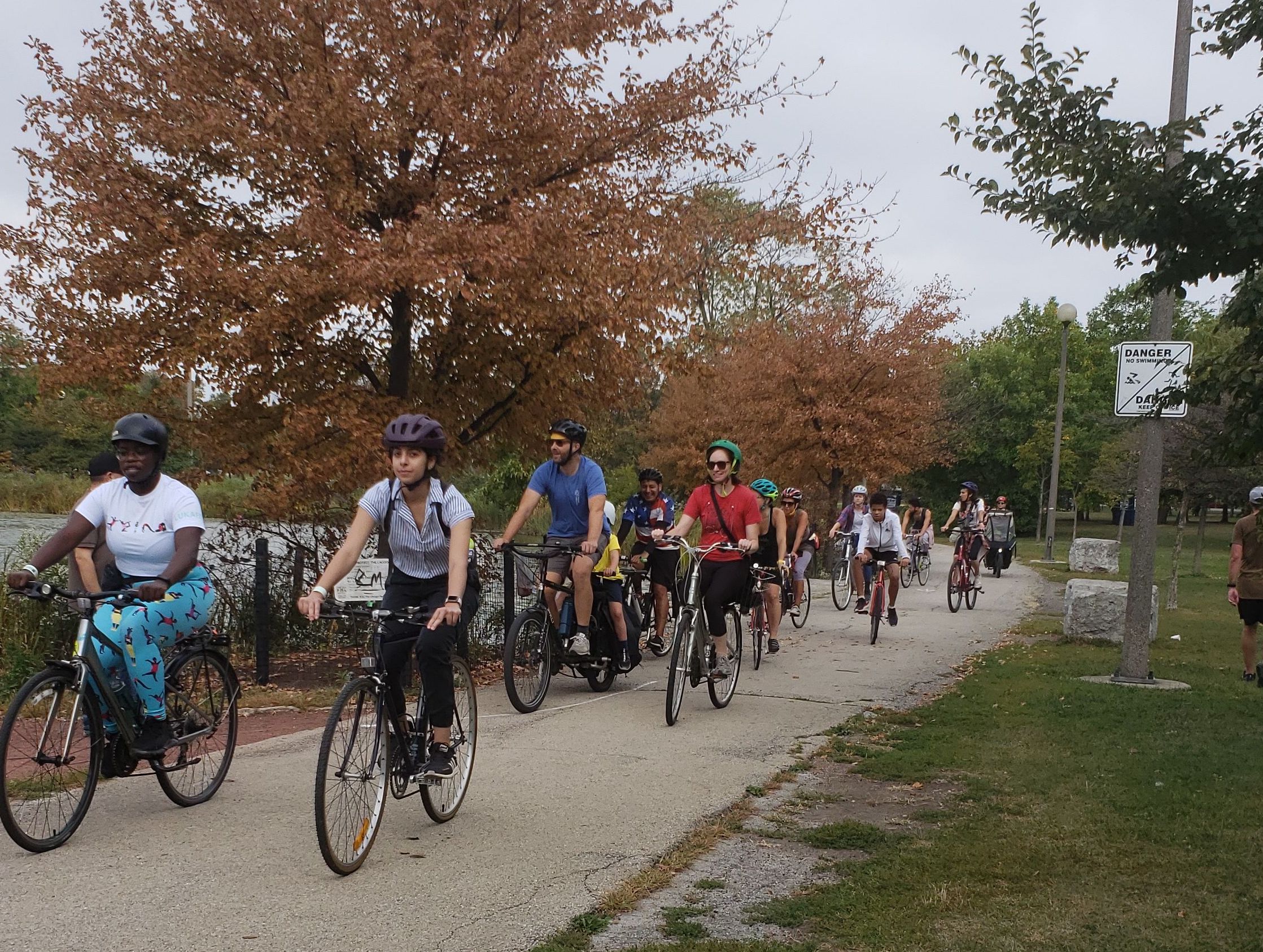 Last Saturday, several Chicago-based social justice groups teamed up with the transportation equity organization Equiticity to host a ride entitled Bikes, Breath + Environmental Justice: Celebrating the African Diaspora in the Americas on Two Wheels. Co-hosting groups included Black Brown + Breathing, Music Moves Chicago (a program of the Old Town School of Folk music), Paseo Boricua Tour Company, Environmentalists of Color, The Honeycomb Network, and Organic Oneness.