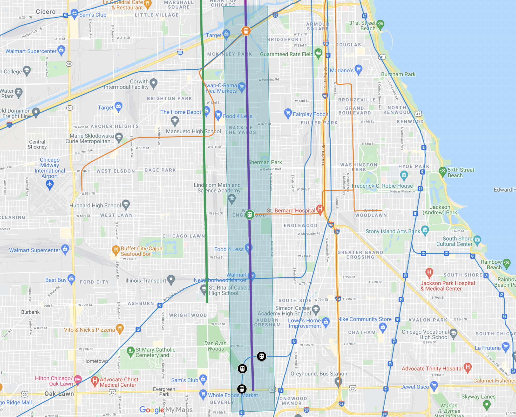 It’s also worth noting that a higher proportion of the Ashland route would have have existed on the South Side than the Western route, since the former would have terminated at 95th while the latter would have ended two miles further north at 79th.