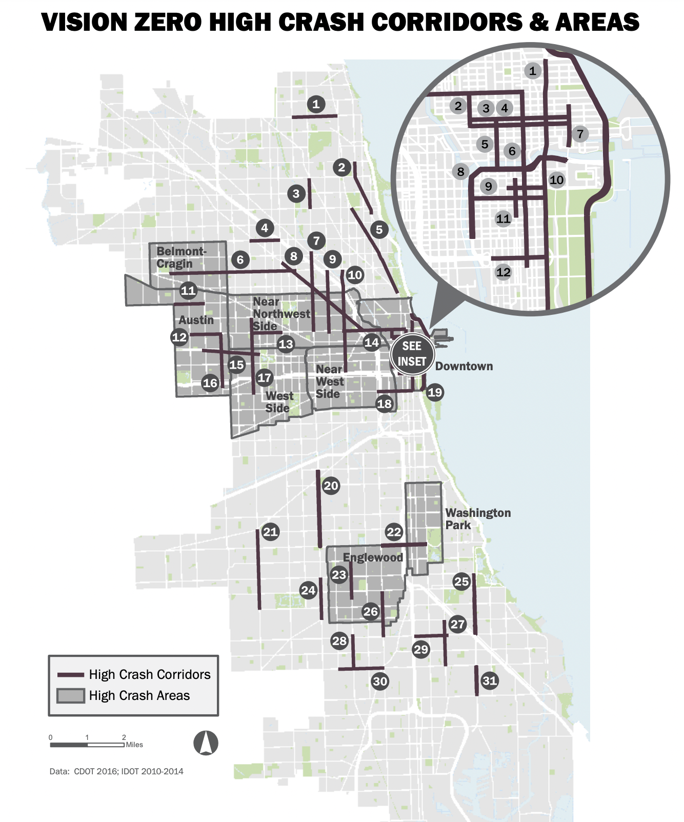 The city noted that CDOT launched the South Side Vision Zero program, working with stakeholders to reduce serious and fatal crashes in neighborhoods heavily impacted by traffic violence, including Englewood, West Englewood, Grand Boulevard, and Washington Park. Seven out of eight High Crash Areas identified in the city’s Vision Zero Chicago Action Plan are on the South and West sides, and the study found that people in low-income communities are three times as likely to die in a traffic crash as the citywide rate.
