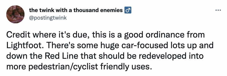 Metropolitan Planning Council transportation director Audrey Wennink is also a fan. “This is a great policy to encourage more homes and businesses near transit, improve the safety of streets and sidewalks near transit, and increase affordable, accessible housing near transit,” she tweeted. “It will boost the sustainability and equity of Chicago development.”